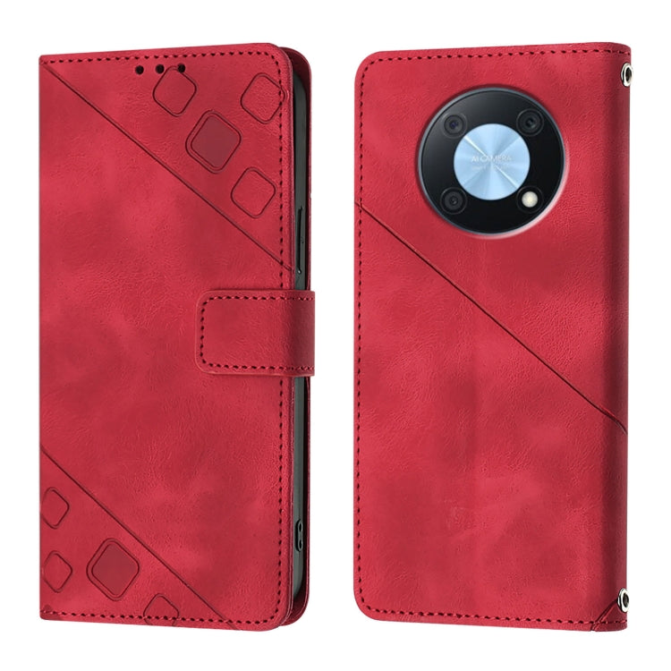 Funda de Cuero para Huawei Nova 12S Global Skin Feel Teléfono En Relieve (Rojo)