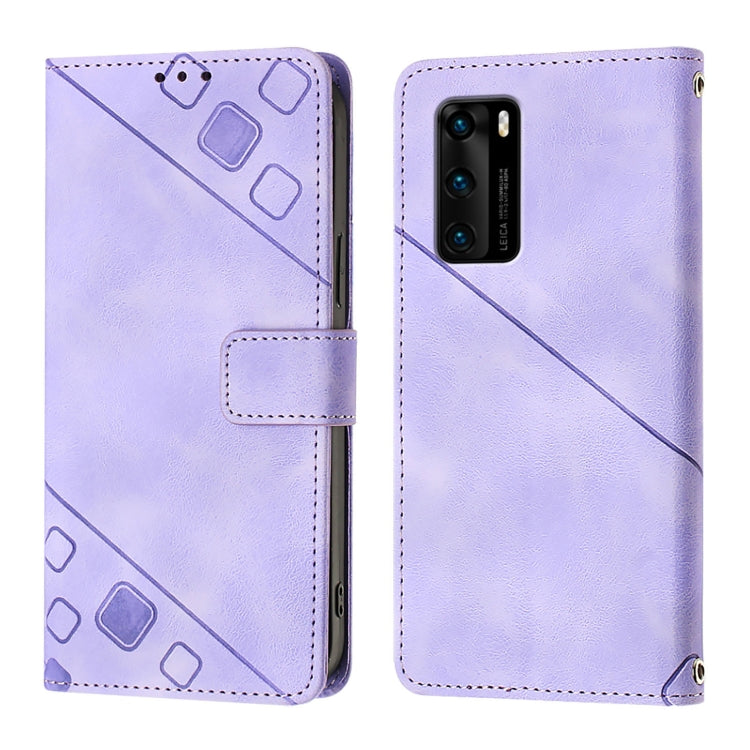 Funda de Cuero Skin Feel para Huawei P40 en Relieve (Púrpura Claro)