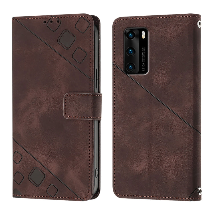 Funda de Cuero para Huawei P40 Skin Feel Teléfono En Relieve (Marrón)