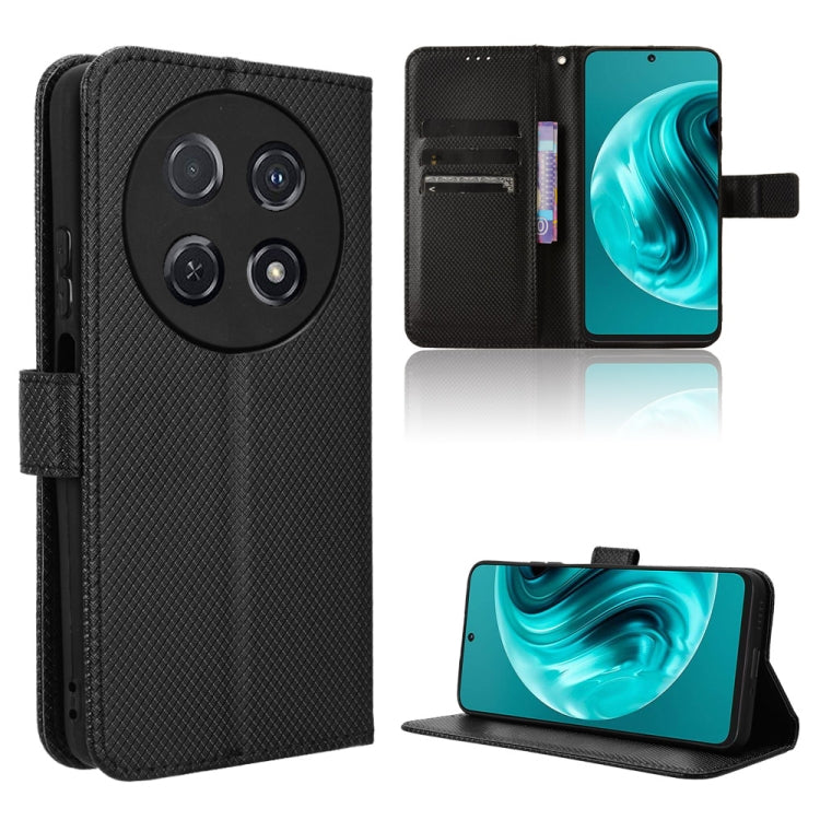 Funda de Cuero con Textura de Diamante para Huawei Nova 12I 4G y Enjoy 70 Pro 4G (Negra)
