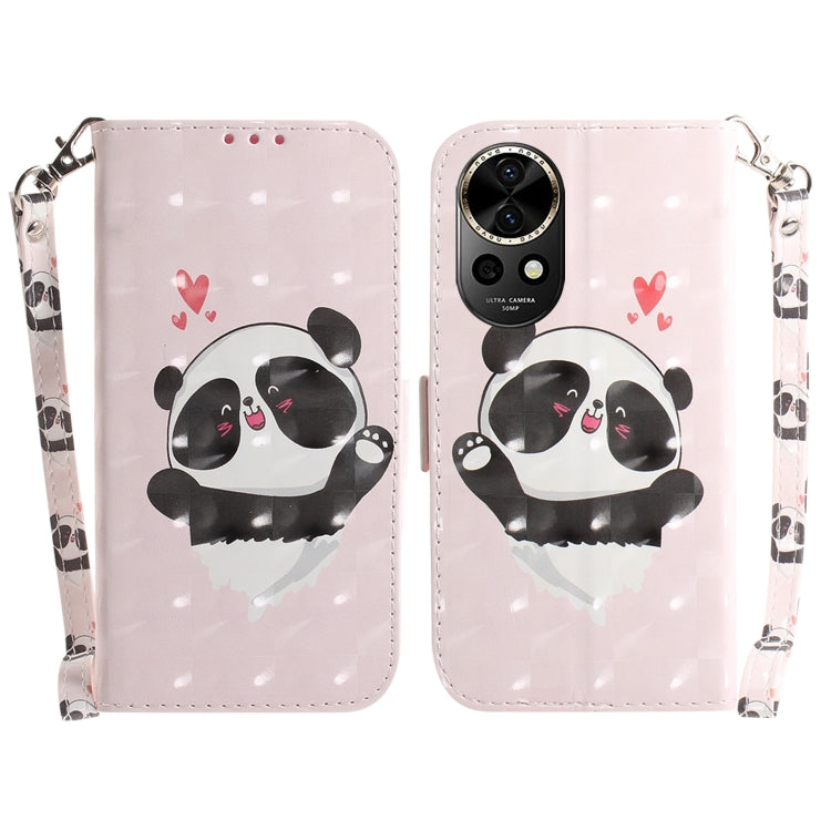 Funda de Cuero para Huawei Nova 12 Pro con Tapa Horizontal 3D (Corazón Panda)