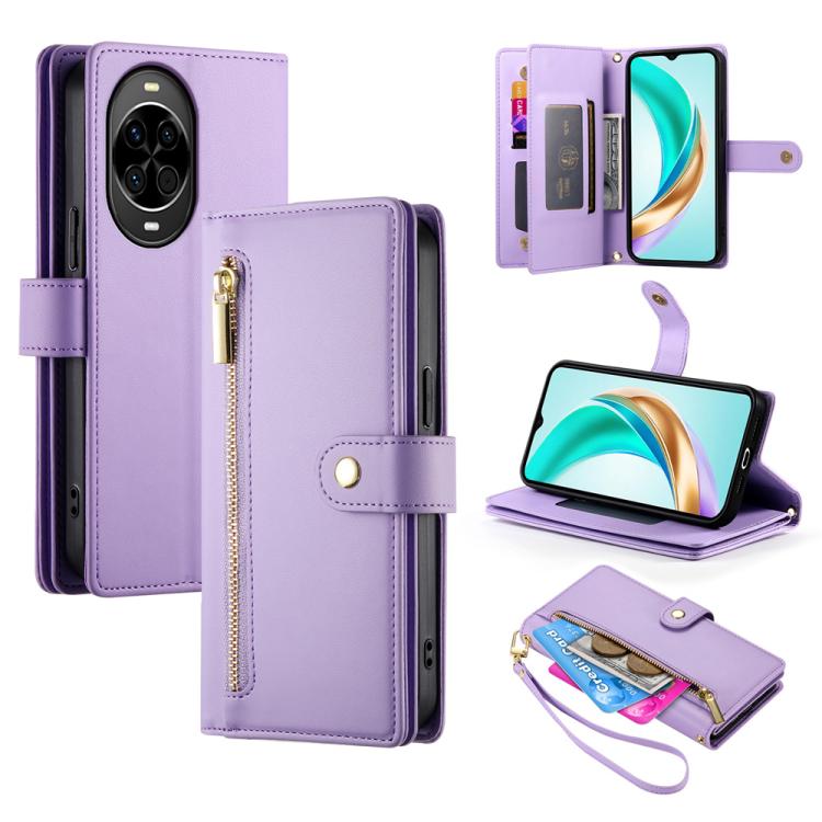 Funda de cuero con cremallera y ranuras para tarjetas para Huawei Nova 14 (morado)
