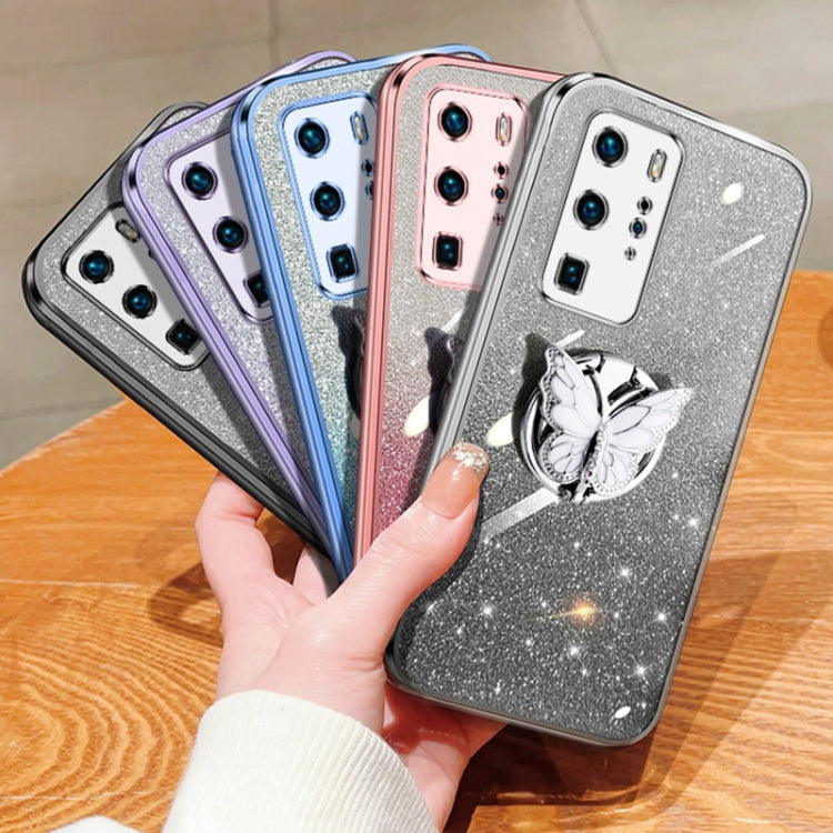 Funda para Huawei P40 Pro de TPU con Soporte de Mariposa y Brillo Degradado (Negro)