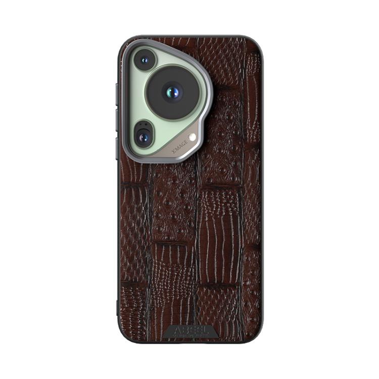 Funda de Piel Auténtica Magsafe con Micrograbado 6D para Huawei Pura 70 Abeel Beast Pattern (Marrón)