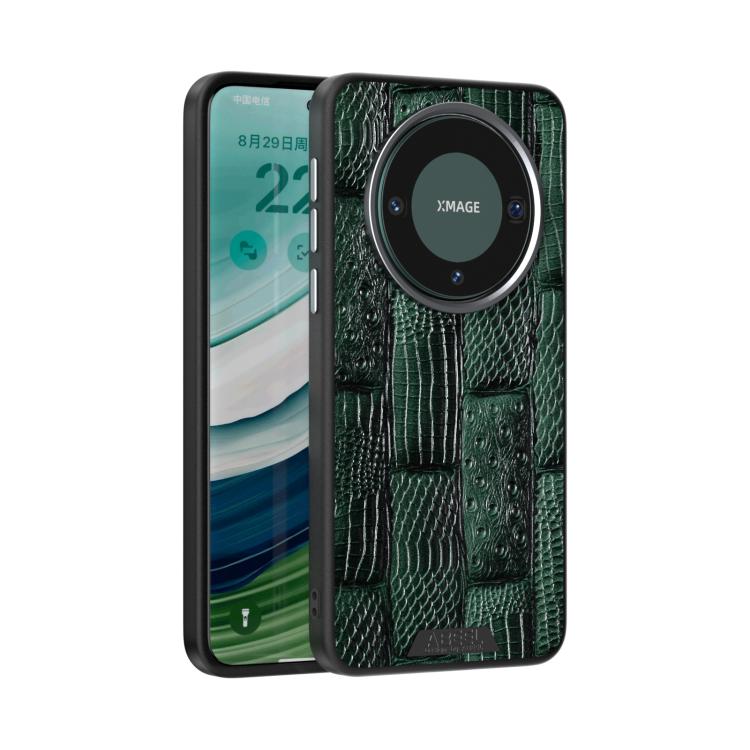 Funda de Piel Auténtica Magsafe con Micrograbado 6D Abeel Beast Pattern para Huawei Mate 60 (Verde)