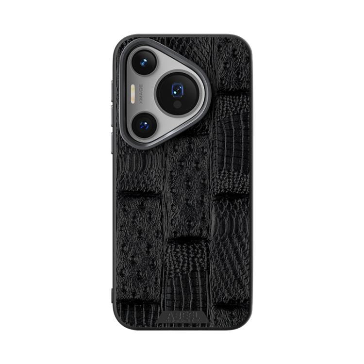 Funda de Cuero Genuino Magsafe con Micrograbado 6D para Huawei Pura 70 Ultra Beest (Negro)