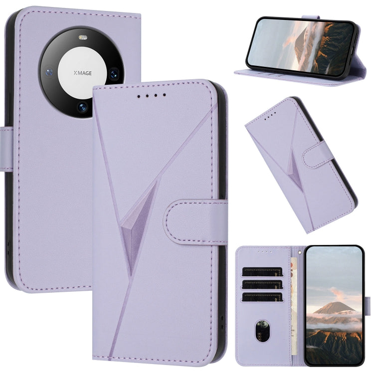 Funda de Cuero con Cierre de Hebilla y Diseño Triangular para Huawei Mate 60 (Morado Claro)