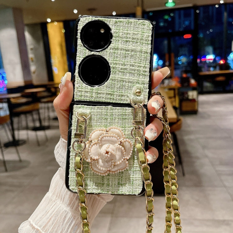 Funda para Teléfono Huawei P50 Pocket Camellia Plaid Fabric PC con Cordón Largo (Verde)