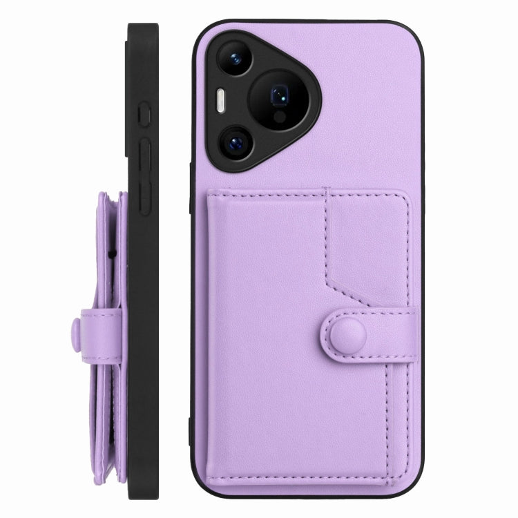 Funda Antirrobo RFID para Huawei Pura 70 Pro con Botón y Tarjetero (Morado)