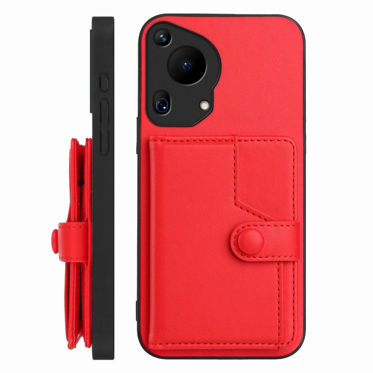 Funda Antirrobo con Botón y Tarjetero para Huawei Pura 70 Pro (Roja)