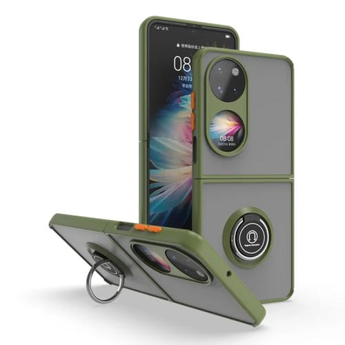 Funda híbrida PC y TPU para Huawei P50 P50 Q Shadow I con Ring Kickstand (Armygreen)
