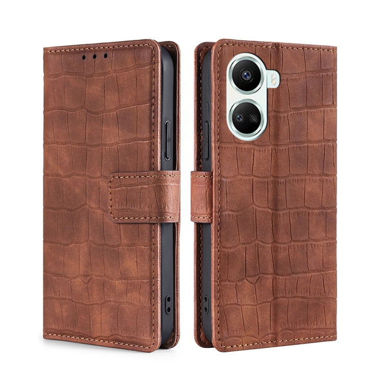 Funda de Cuero para Huawei Nova 10 Se con Skin Feel Cocodrilo y Cierre Magnético (Marrón)