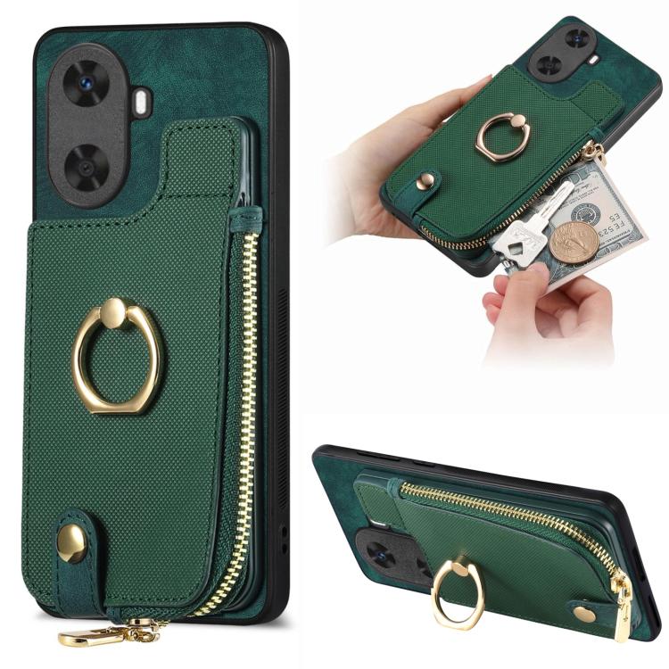 Funda para Teléfono Huawei Nova 11 con Billetera MultiTarjeta y Anillo (Verde)