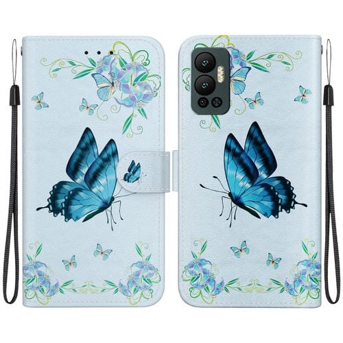 Estuche de Cuero para Infinix Hot 12 con Dibujo Coloreado y Textura de Cristal (Pensamientos Azules)