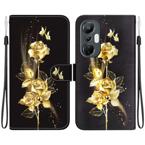 Estuche de Cuero para Infinix Hot 30 con Dibujo Coloreado y Textura de Cristal (Peonía Dorada)