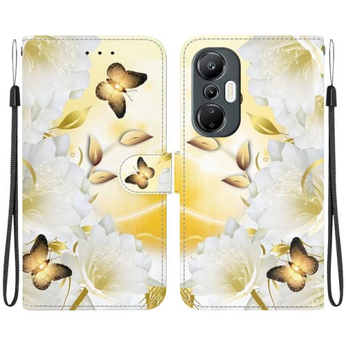Funda de Cuero para Infinix Hot 20 con Dibujo Coloreado y Textura de Cristal (Mariposa Dorada Rosa)