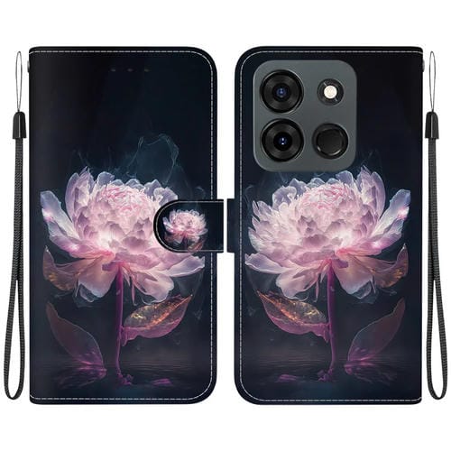 Estuche de Cuero para Infinix Hot 30 con Dibujo Coloreado y Textura de Cristal (Peonía de Cristal)