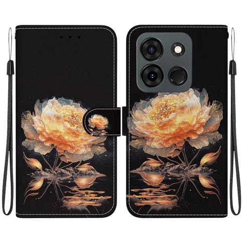 Funda de Cuero para Infinix Smart 7 con Dibujo Coloreado y Textura de Cristal Indio (Peonía Dorada)