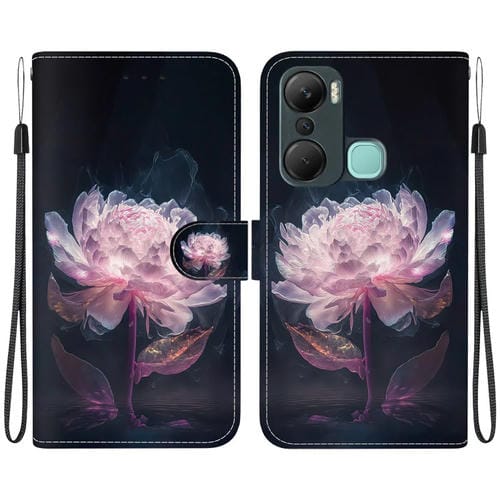 Funda de Cuero para Infinix Smart 6 con Dibujo Coloreado y Textura de Cristal (Peonía Púrpura)
