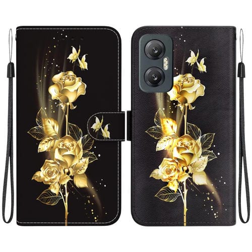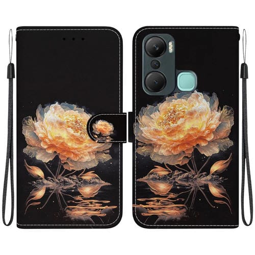 Funda de Cuero para Infinix Hot 20 5G con Dibujo Coloreado y Textura de Cristal (Peonía Dorada)