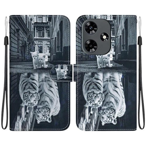 Funda de Cuero para Infinix Hot 12 con Dibujo Coloreado y Textura de Cristal (Reflejo de Tigre Gato)