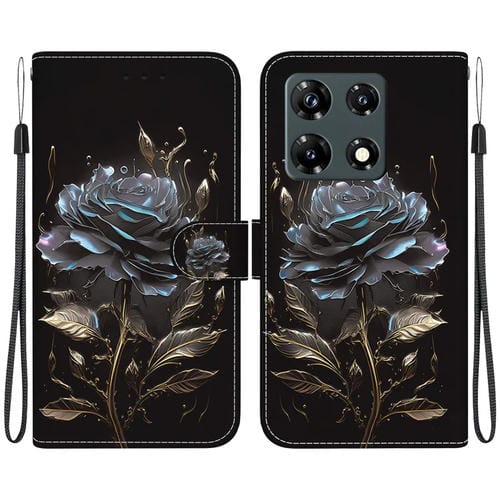 Funda de Cuero para Infinix Note 30 Pro con Dibujo Coloreado y Textura de Cristal (Rosa Negra)