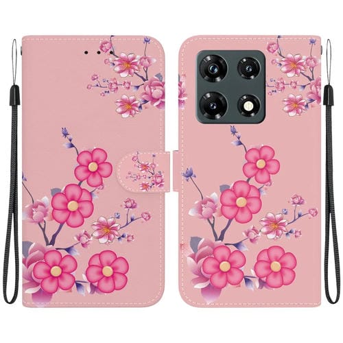 Funda de Cuero para Infinix Note 30 Pro con Dibujo Coloreado y Textura de Cristal (Flores de Cerezo)