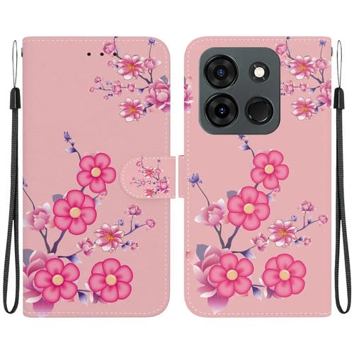 Funda de Cuero para Infinix Smart 6 con Dibujo Coloreado y Textura de Cristal (Flor de Ciruelo)