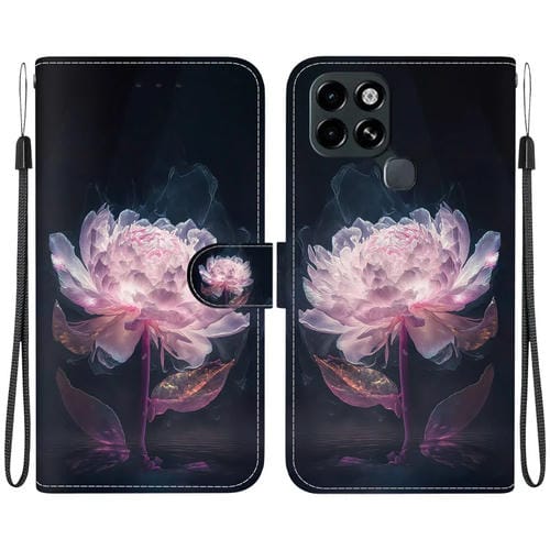 Estuche de Cuero para Infinix Hot 20 con Dibujo Coloreado y Textura de Cristal (Peonía de Cristal)