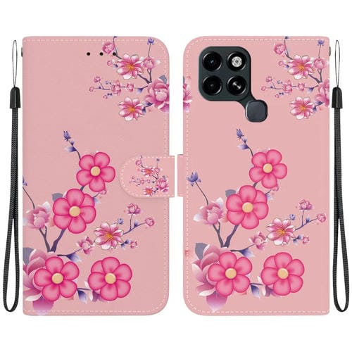 Funda de Cuero para Infinix Smart 6 con Dibujo Coloreado y Textura de Cristal (Flores de Cerezo)