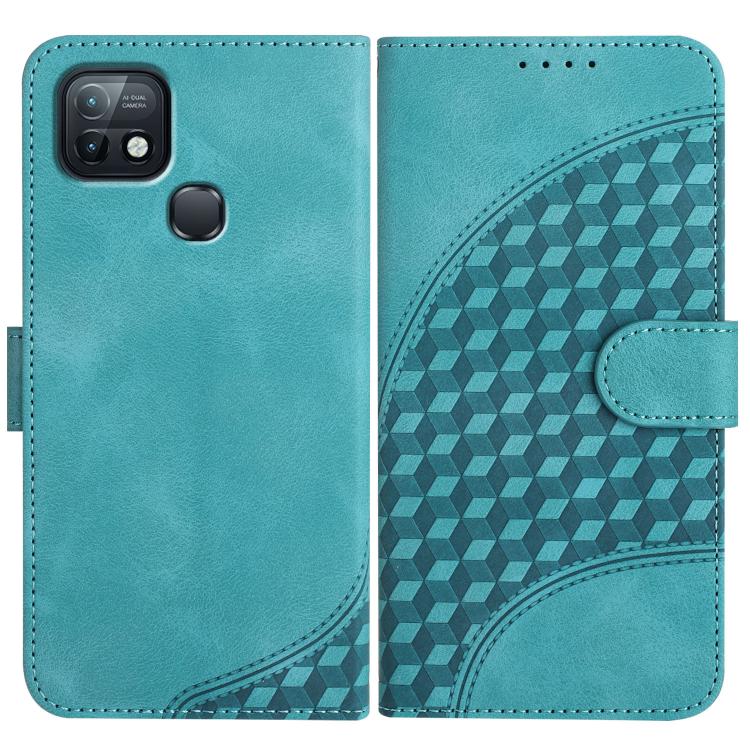 Funda Cuero con Relieve Cabeza de Elefante para Infinix Smart 6 Plus con Cordón (Azul Claro)