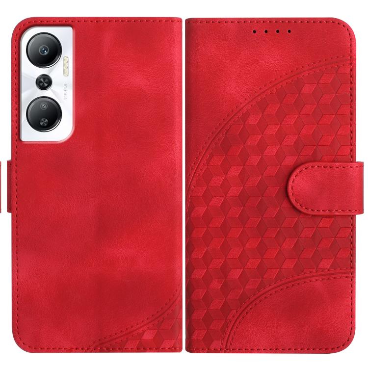 Funda de Cuero con Relieve de Cabeza de Elefante para Infinix Hot 20 4G con Cordón (Rojo)