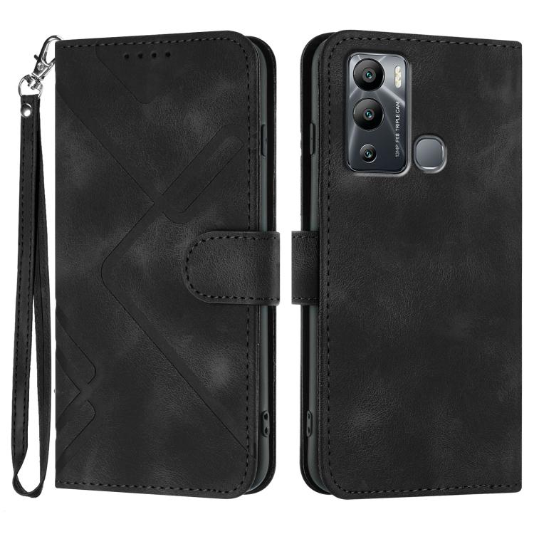 Funda de Cuero para Infinix Hot 12I con Diseño de Líneas y Tacto Suave (Negro)