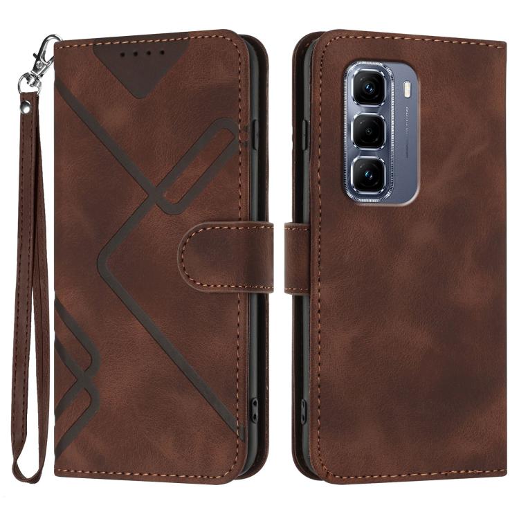 Funda de Cuero para Infinix Hot 50 Pro 4G con Diseño de Líneas y Tacto Suave (Café)