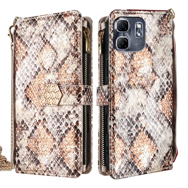 Funda de Piel Textura de Serpiente con Asa Cruzada para Infinix Zero 40 4G (Negra)