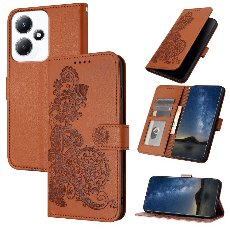 Funda de Cuero con Tapa y Relieve Flor de Datura NFC para Infinix Hot 30 Play (Marrón)