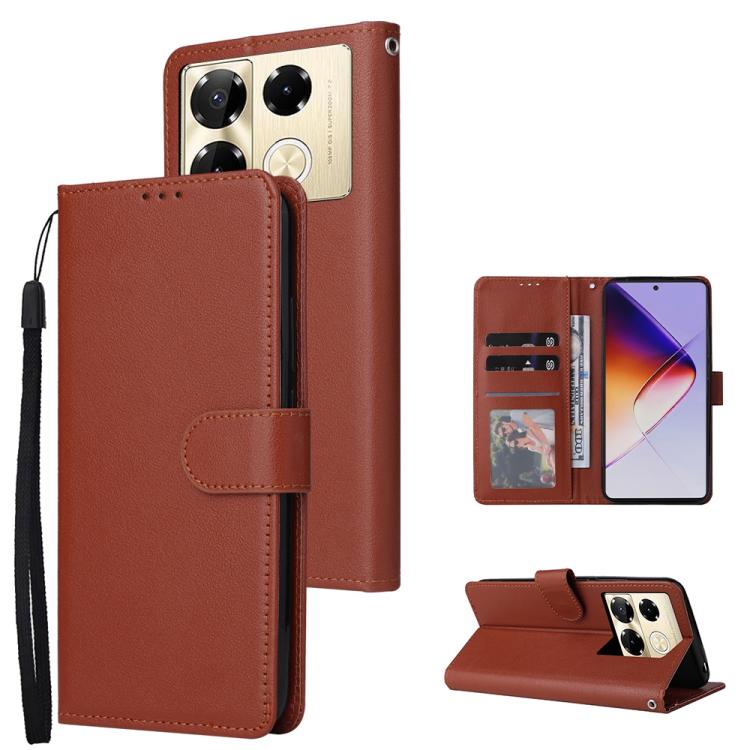 Funda de Cuero Multifuncional para Infinix Note 40 Pro 5G / 4G / 40 Pro+ 5G con 3 Ranuras (Marrón)