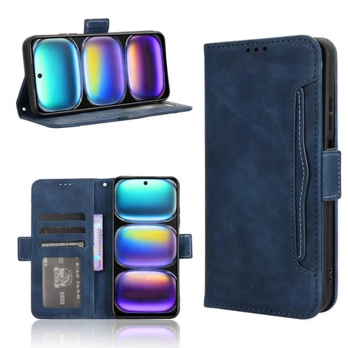 Funda de Cuero Textura Piel de Becerro para Infinix Zero 40 4G con Ranuras para Tarjetas (Azul)