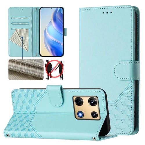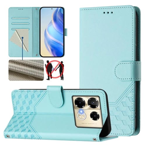 Funda de Cuero Rfid con Relieve en Panal para Infinix Note 40 Pro+ 5G (Verde Menta)
