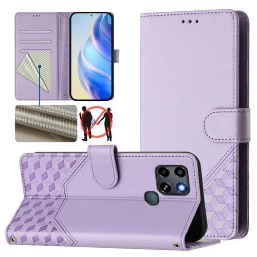 Funda de Cuero Rfid con Relieve en Panal para Infinix Hot 20 Play (Violeta)