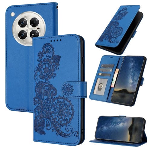 Funda de Cuero con Tapa y Relieve Flor de Datura para Infinix Zero 40 4G y 5G (Azul)