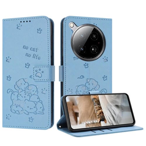 Funda de Cuero Infinix Zero 40 4G/Zero 40 5G con Diseño de Gatito en Relieve y Cordón (Azul)
