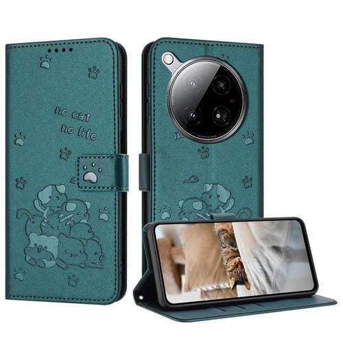Funda de Cuero Infinix Zero 40 4G y 5G con Diseño de Gatito y Cordón (Verde Oscuro)
