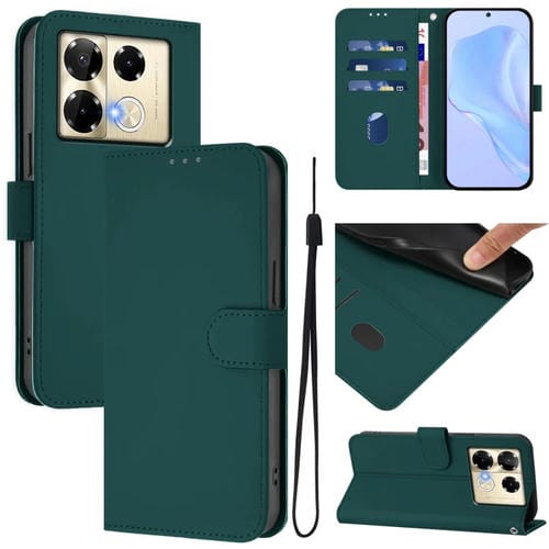 Funda de Cuero con Cordón para Infinix Note 40 Pro 4G con Tacto de Piel (Verde Oscuro)