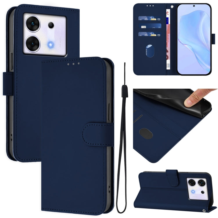 Funda de Cuero con Cordón para Teléfono Infinix Note 30 4G/5G con Tacto de Piel (Azul Oscuro)