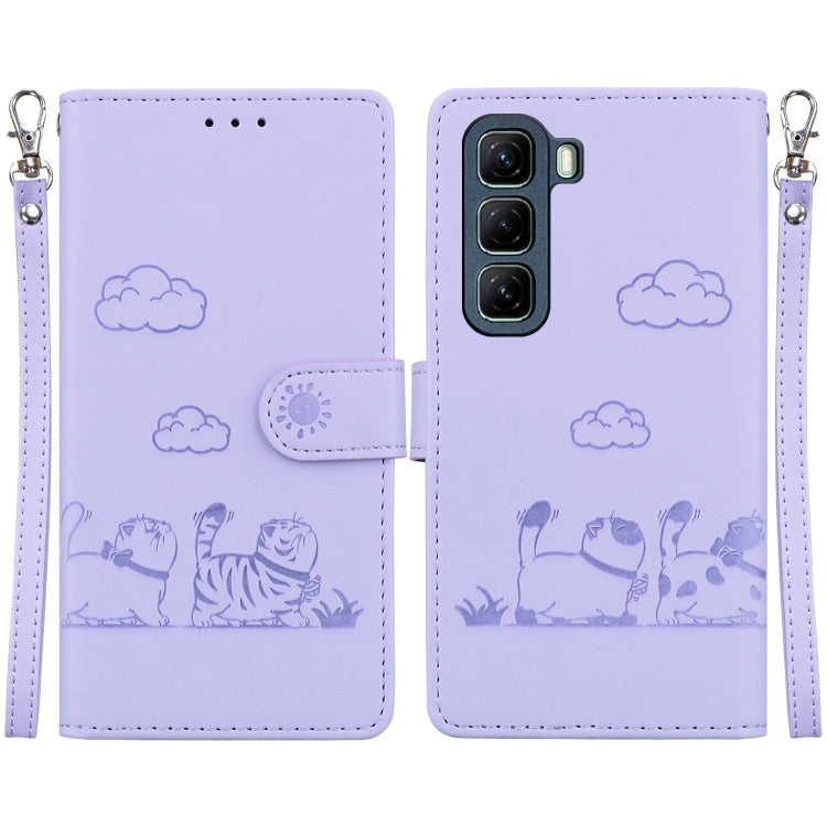 Funda de Cuero Rfid para Infinix Hot 50 4G con Diseño de Gatos (Morado)