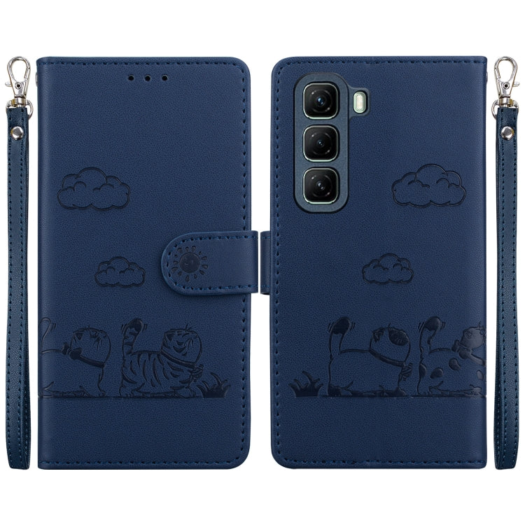Funda de Cuero Rfid para Infinix Hot 50 4G con Diseño de Gatos (Azul)