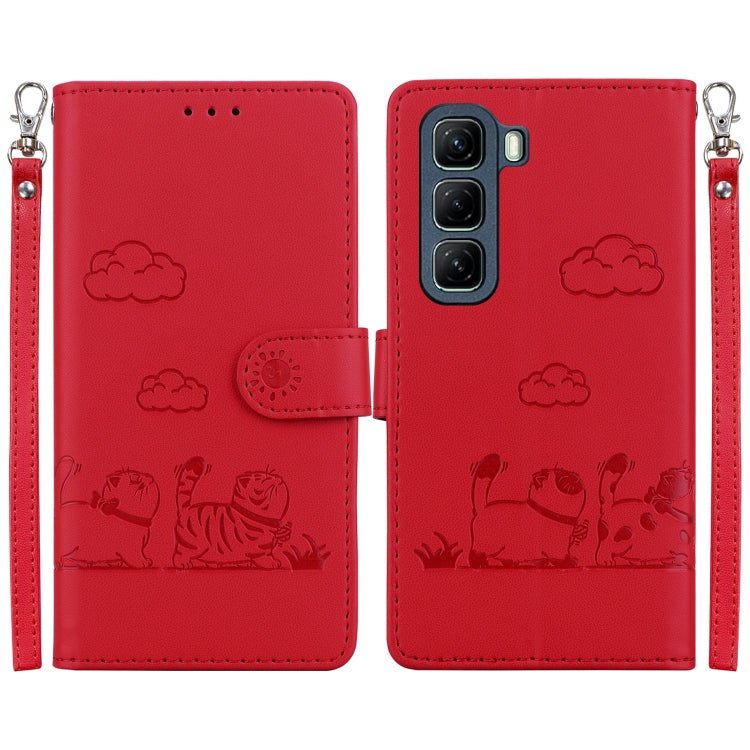 Funda de Cuero Rfid para Infinix Hot 50 5G con Diseño de Gatos (Rojo)
