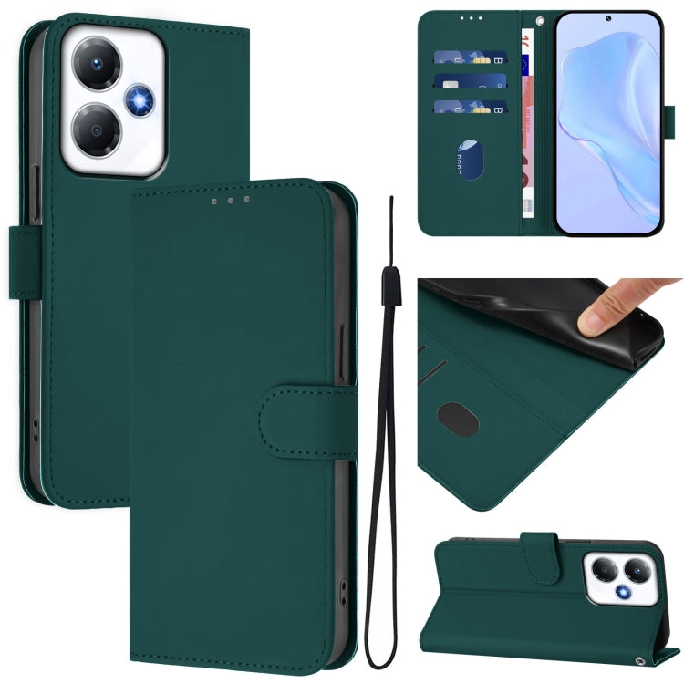 Funda de Cuero con Cordón para Infinix Hot 30 Play NFC 4G con Tacto de Piel (Verde Oscuro)