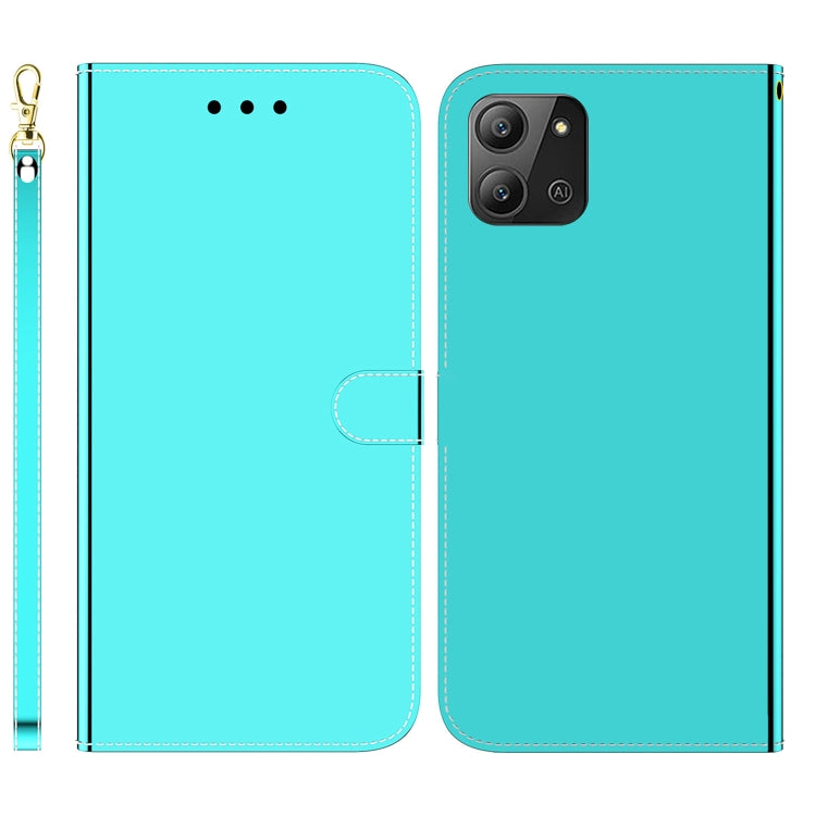Funda de Cuero con Tapa Horizontal para Infinix Hot 11 (2022) Superficie Espejo (Verde Menta)